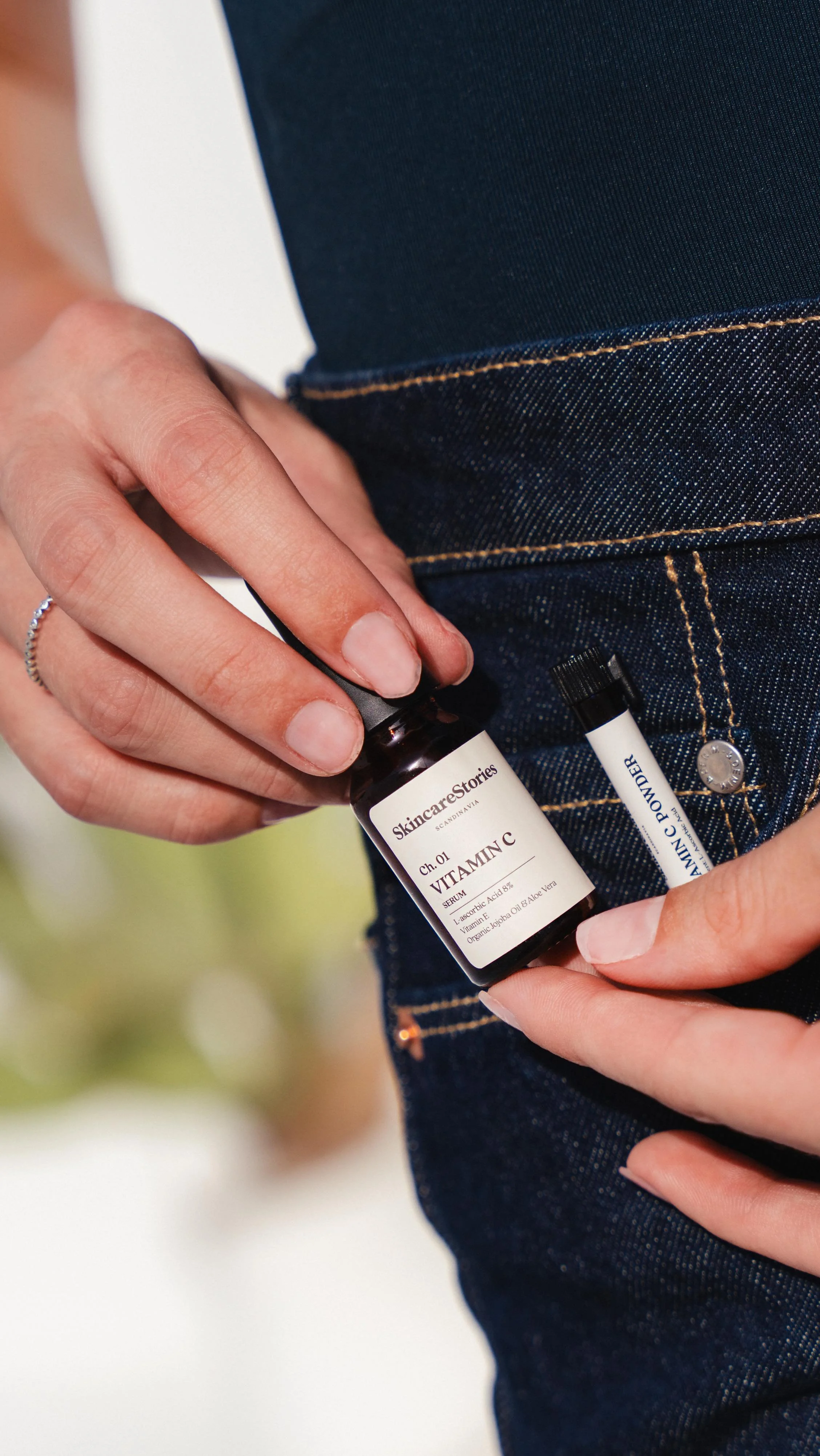 That’s why we keep it separate. To preserve its full potency, we package the pure Vitamin C powder on its own — so you can mix it fresh, right before use.